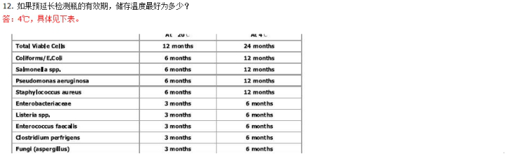 | 1. 微生物檢測(cè)瓶除可以檢測(cè)活菌外,死菌可以檢測(cè)么? 答:不能檢測(cè)死菌。 | 2. 微生物檢測(cè)瓶可以檢測(cè)厭氧菌么? 答:檢測(cè)瓶的檢測(cè)范圍即包括厭氧菌(亞硫酸鹽梭狀芽胞桿菌 Sulphite reducing Clostridia,產(chǎn)氣莢膜桿菌 Clostridium perfrigens),也包括需氧菌。 檢測(cè)不同種微類生物的檢測(cè)瓶中試劑不同。對(duì)于厭氧菌,我們有特殊的試劑,如檢測(cè)產(chǎn)氣莢膜桿菌 Clostridium perfrigens。 | 3. 檢測(cè)瓶的檢測(cè)原理都分別用到了哪些檢測(cè)方法? 答:培養(yǎng)皿法、酶法、免疫法、基因法。 | 4. 對(duì)于第 3 題,你能簡(jiǎn)要敘述這些方法的優(yōu)劣勢(shì)么? 答:與傳統(tǒng)的培養(yǎng)基法、膠體金、酶免法和 PCR 法不同,德國(guó)皇家微生物檢測(cè)儀是多種方法的集合。單獨(dú)使用一種檢測(cè)方法都有自己的缺點(diǎn):比如, PCR 法需要專業(yè)技術(shù)人員和昂貴設(shè)備; 培養(yǎng)基法操作復(fù)雜; 膠體金法靈敏度低; 酶免法特異性捕捉不充分。 德國(guó)皇家微生物檢測(cè)瓶快速檢測(cè)系列產(chǎn)品是以上多種方法的綜合運(yùn)用,吸收了每種方法的優(yōu)點(diǎn),彌補(bǔ)了各種方法的不足。 | 5. 用微生物檢測(cè)瓶進(jìn)行微生物檢測(cè)時(shí),步是先放樣本還是無(wú)菌水? 答:都可以。 | 6. 對(duì)樣本進(jìn)行微生物接種時(shí),需要在無(wú)菌環(huán)境下進(jìn)行么? 答:檢測(cè)瓶是通過(guò)捕捉特異性,結(jié)合多種檢測(cè)法進(jìn)行分析。無(wú)菌環(huán)境與否均可(臨檢的場(chǎng)所大都是非無(wú)菌環(huán)境)。 | 7. 檢測(cè)瓶可以檢測(cè)表面樣本和固態(tài)樣本么? 答:可以檢測(cè)固態(tài)、液態(tài)、表面樣本(用所配棉棒沾濕無(wú)菌水后涂抹表面)。紙漿等膏狀、糊狀、粘稠狀昂本都可以檢測(cè)。 | 8. 檢測(cè)瓶在檢測(cè)固態(tài)樣本時(shí)需要對(duì)進(jìn)行研磨、稀釋等前處理過(guò)程么? 答:直接將樣本放入檢測(cè)瓶,無(wú)需任何前處理。 | 9. 每次檢測(cè)的無(wú)菌水用量是多少? 答:一般是 11ml。如果是檢測(cè)液態(tài)樣本或水樣本,建議加樣 1ml,加無(wú)菌水 10ml。 | 10. 放入樣本和無(wú)菌水后,“搖勻使其充分溶解和混合”這一操作步驟,無(wú)論定性分析還是定量分析,都是必要的步驟么? 答:是的,搖勻無(wú)論是定性還是定量分析都是必要步驟。 | 11. 不同的微生物對(duì)應(yīng)的孵育溫度是一樣的么?請(qǐng)舉例說(shuō)明。 答:不一樣。37 攝氏度居多:活菌總數(shù)、沙門氏菌、李斯特菌等,大腸桿菌 44 攝氏度等,詳細(xì)請(qǐng)參考對(duì)照表。 | 12. 若是檢測(cè)冷菜或者冰欺凌這樣的樣本,孵育是否應(yīng)該低溫進(jìn)行? 答:對(duì)檢測(cè)樣本自身的溫度沒(méi)有限制,檢測(cè)樣本中微生物,請(qǐng)嚴(yán)格遵照所檢測(cè)微生物對(duì)應(yīng)的孵育溫度,依然根據(jù)對(duì)照表。 | 13. 如果想加快檢測(cè)時(shí)間,孵育溫度可以調(diào)至高于所檢測(cè)微生物對(duì)應(yīng)的孵育溫度? 答:不可以,嚴(yán)格遵照對(duì)照表。 | 14. 操作手冊(cè)規(guī)定放入的樣本量為多少? 答:0.1g‐1.0g 或 0.1ml‐1.0ml。 | 15. 若放入的樣本量高于規(guī)定的樣本量,檢測(cè)結(jié)果會(huì)不同,或者檢測(cè)結(jié)果(定量時(shí))增加么? 答:樣本量多一些或少一些,定量分析結(jié)果不會(huì)有變化。 原因:傳統(tǒng)的微生物學(xué)檢測(cè)方法,包括參考方法,即基于固體選擇性培養(yǎng)基的菌落計(jì)數(shù)法內(nèi)在的統(tǒng)計(jì)分散度(統(tǒng)計(jì)名詞,也稱為統(tǒng)計(jì)變異,是變量或概率分布蔓延,常見(jiàn)的例子是方差,標(biāo)準(zhǔn)差和四分位距。)大于 50%。很多實(shí)驗(yàn)室已經(jīng)證實(shí)皇家生物檢測(cè)法與其他檢測(cè)方法比統(tǒng)計(jì)分散度低,可信度高。但不管怎樣,25‐30%的統(tǒng)計(jì)分散度還是有的。另外,由采樣產(chǎn)生的統(tǒng)計(jì)分散度同樣應(yīng)該考慮在 內(nèi),尤其是微生物經(jīng)常容易繁殖的固態(tài)的肉制品類。 因此,加樣是 0.5g 或 1.5g 所得的結(jié)果在統(tǒng)計(jì)上是等價(jià)的(和其他任何方法獲得的結(jié)果相等)。 | 16. 對(duì)于面粉這類低密度的散裝樣本,可以照常檢測(cè)么? 答:可以。 | 17. 對(duì)于醬油這樣的深色樣本,會(huì)影響定性檢測(cè)結(jié)果的判讀么?您有什么好的建議? 答:如果搭配檢測(cè)儀進(jìn)行定量分析,不存在這個(gè)問(wèn)題;如果只是通過(guò)肉眼觀察變色進(jìn)行定性分析,深色樣本如果擔(dān)心肉眼不能夠清晰的辨認(rèn),建議進(jìn)行稀釋后再進(jìn)行檢測(cè)。還記得第 15 題得答案么?加樣是 0.5g 或 1.5g 所得的結(jié)果在統(tǒng)計(jì)上是等價(jià)的和其他任何方法獲得的結(jié)果相等)。稀釋同樣的道理。 | 18. 如果是檢測(cè)水樣,還需要加入無(wú)菌水么?加多少? 答:建議加水樣 1ml,無(wú)菌水 10ml。 | 19. 不同的微生物對(duì)應(yīng)的開始顏色和呈陽(yáng)性的顏色都相同么?請(qǐng)舉例說(shuō)明。 答:不同。 例如,沙門氏菌孵育 10 分鐘左右出現(xiàn)的開始顏色為紅色,陽(yáng)性顏色為黃色;李斯特菌,開始顏色為藍(lán)色,陽(yáng)性顏色為黃色。具體請(qǐng)參考對(duì)照表。 | 20.微生物檢測(cè)儀兼?zhèn)浞跤龣C(jī)的功能么? 答:是的。將